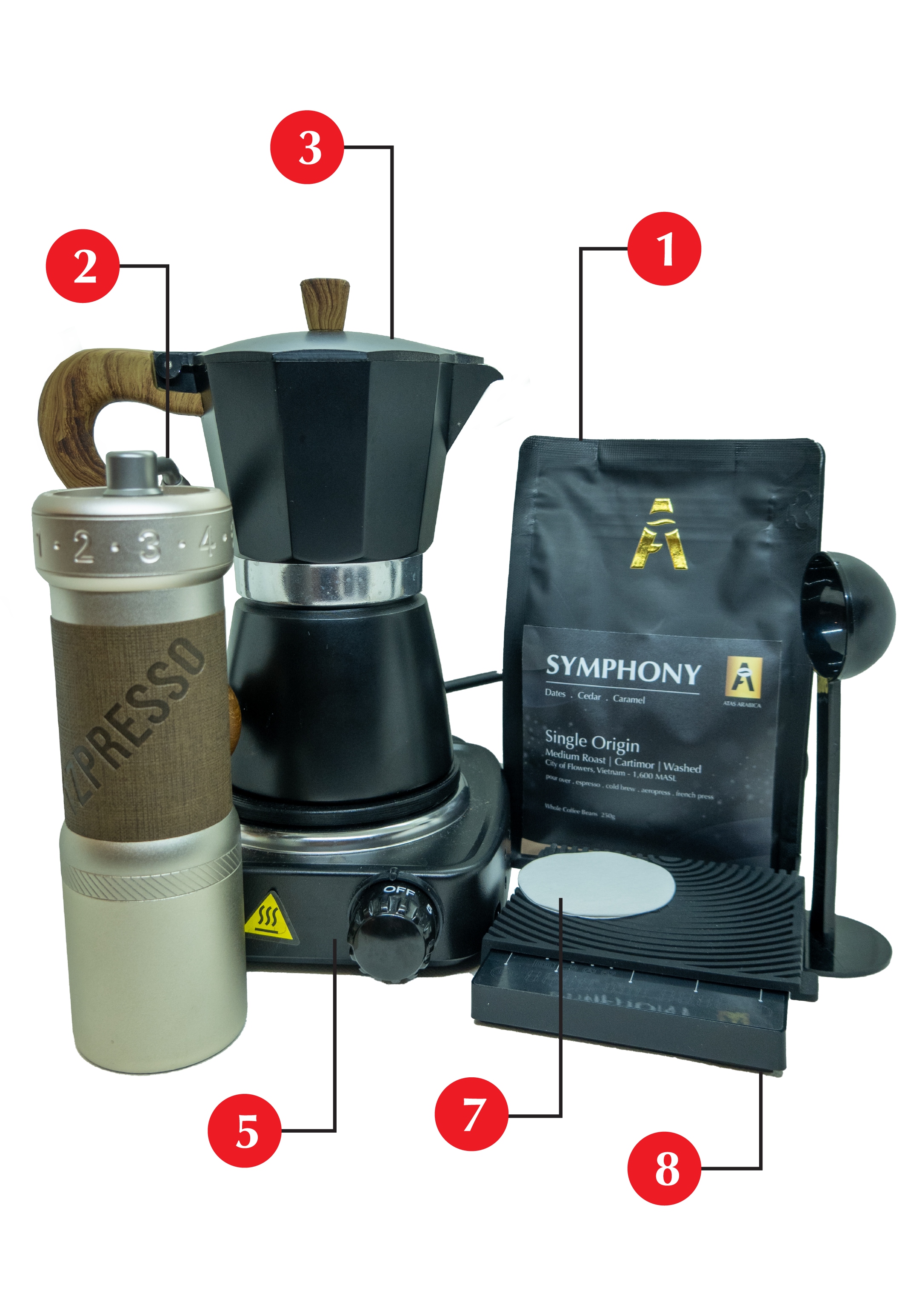 5) Stove or electric power point (depending on type of moka pot you use)